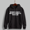 Bold Design: Features striking white text in a clean, minimalist font that contrasts beautifully against the black hoodie.
